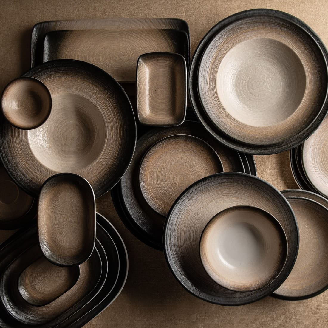 Kolekcja Canyon od ID Fine czerpie inspirację z naturalnego piękna otaczającego nas świata. Każdy element tej serii został zaprojektowany z myślą o subtelnym przejściu kolorów, co tworzy estetykę zarówno organiczną, jak i wyrafinowaną. Unikatowa, matowa glazura dodaje dyskretnego uroku każdej aranżacji stołu, podkreślając naturalne tekstury, idealne do eksponowania różnorodnych kreacji kulinarnych. Kolekcja Canyon od ID Fine z pewnością zrobi wrażenie swoim subtelnym, lecz przyciągającym wzrok designem. Kolory kolekcji płynnie przechodzą od jasnego brązu do ciemniejszych odcieni wewnętrznej strony naczyń lub jaśniejszego w centrum w stylu ombre, dodając głębi i charakteru każdej prezentacji potraw. Dodatkowo, paleta kolorów ziemi, takich jak naturalne odcienie brązu i beżu, wzmacnia wrażenie harmonii z naturą, czyniąc tę kolekcję idealną do prezentacji organicznych i zdrowych potraw.