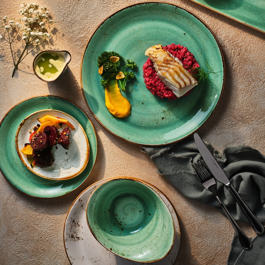 Steelite CRAFT AQUA to niezwykła seria porcelany marki Steelite, która wprowadza świeży i kolorowy akcent na stół. Inspirowany ręcznie wykonanymi, prostymi wyrobami wiejskimi wytwarzanymi przez pokolenia garncarzy przez wiele lat, ten zestaw odzwierciedla piękno bogatych, lśniących glazur, nanoszonych ręcznie. Cała seria CRAFT jest niczym hołd dla przypadkowych efektów i reakcji, które naturalnie zachodzą w piecu garncarskim.