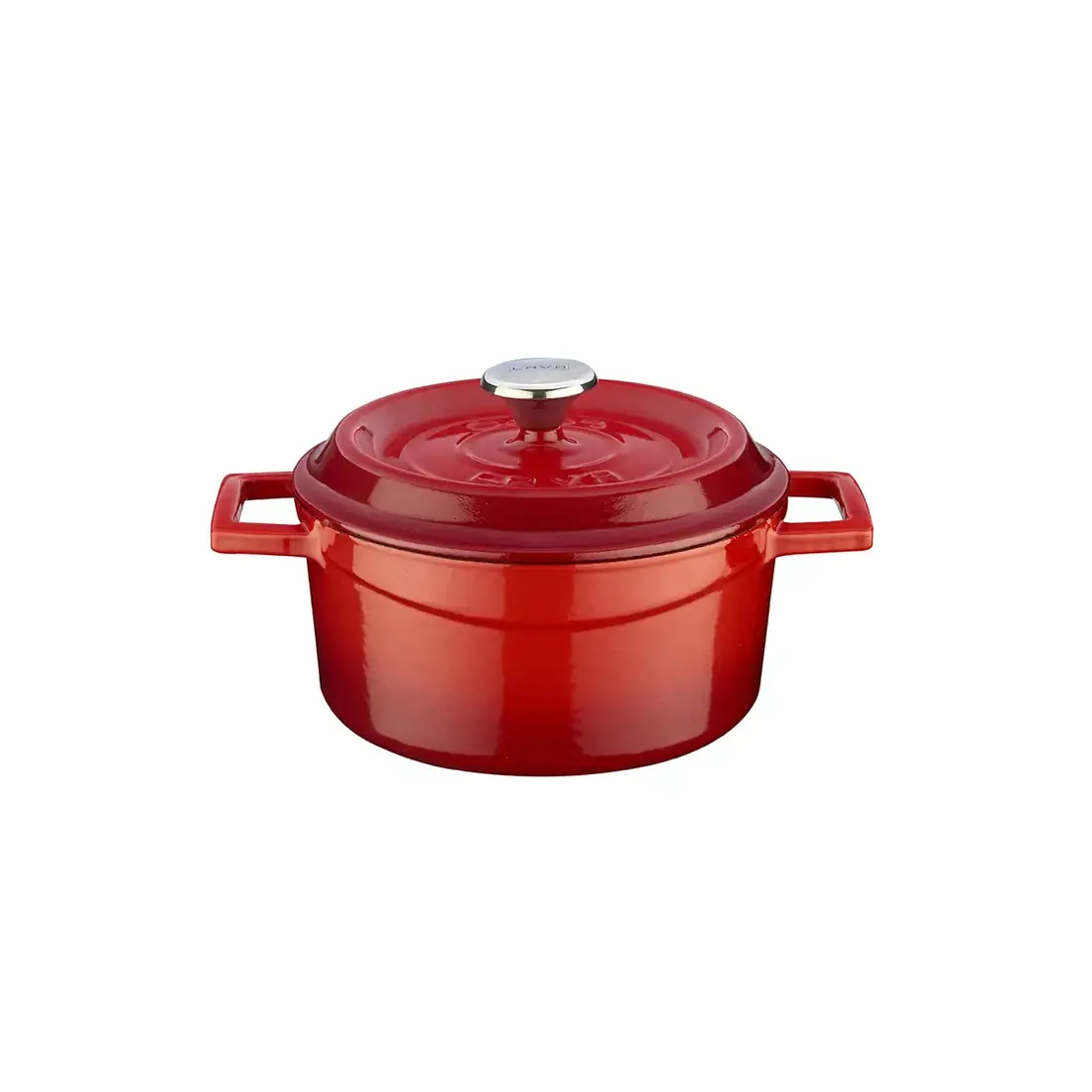 LAVA Casserole to okrągłe naczynie z pokrywką o pojemności 0,53 litra i średnicy 13 cm wykonane z czerwonego emaliowanego żeliwa. Dzięki zastosowaniu tego materiału, naczynie jest bardzo trwałe i równomiernie rozprowadza ciepło, co pozwala na przygotowanie pysznych potraw. Dzięki swoim wyjątkowym właściwościom, naczynie LAVA Casserole utrzymuje ciepło przez długi czas, co pozwala na dłuższe delektowanie się smakiem przygotowanych potraw. Co więcej, dzięki wysokiej jakości emaliowanemu żeliwu, naczynie nadaje się do bezpośredniego serwowania potraw na stole, dodając eleganckiego wyglądu każdej aranżacji na stole. Wykonane z żeliwa pokrytego emalią, naczynia z serii LAVA Enameled Cast Iron Cookware są niezwykle trwałe i odporne.