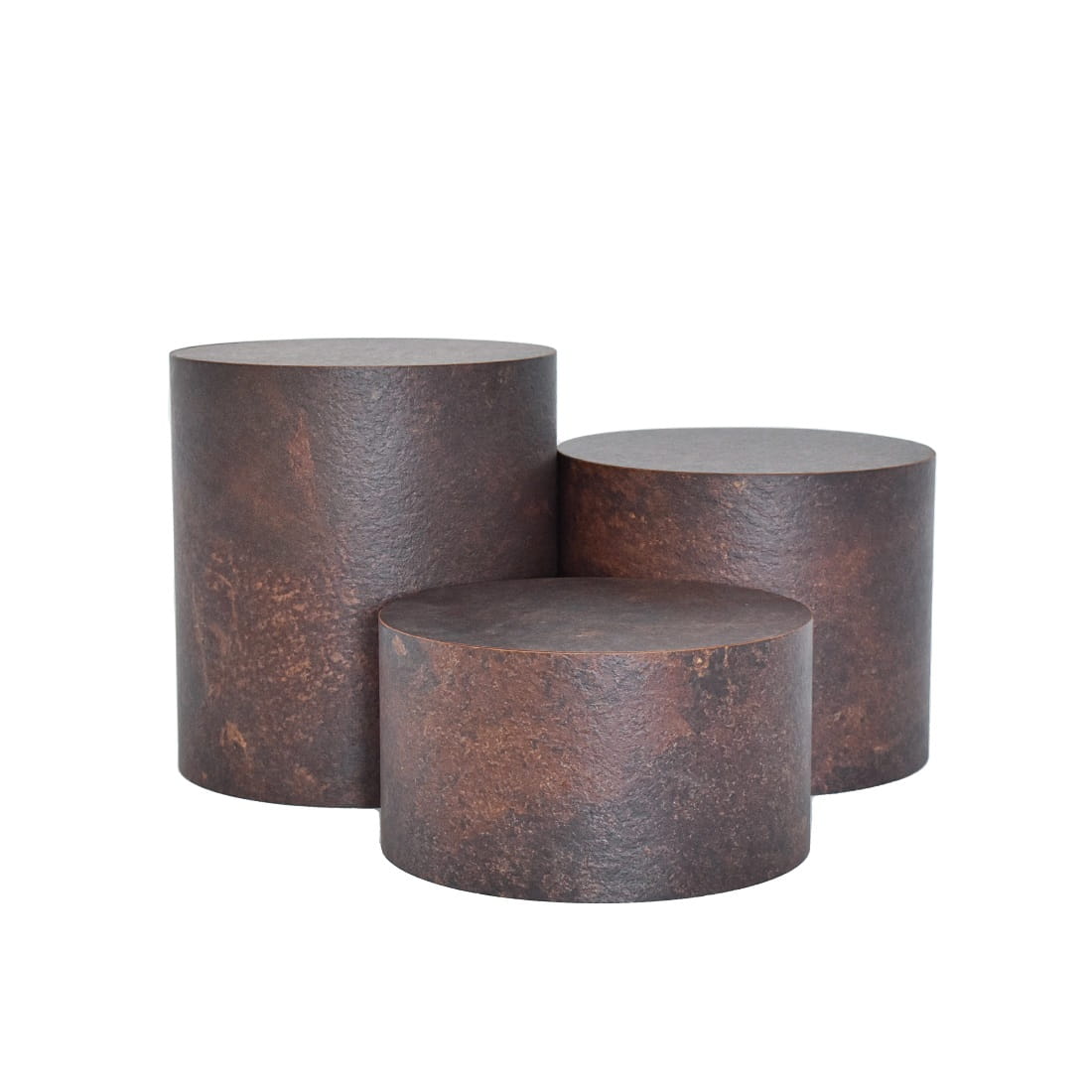 Cylindryczny stojak bufetowy marki Yegam to funkcjonalna i stylowa podstawa, idealna do eksponowania tac, talerzy oraz finger food w nowoczesnych przestrzeniach gastronomicznych. Wykonany z teksturowanego MDF w rdzawym kolorze, nadaje aranżacjom ciepły, industrialny charakter.