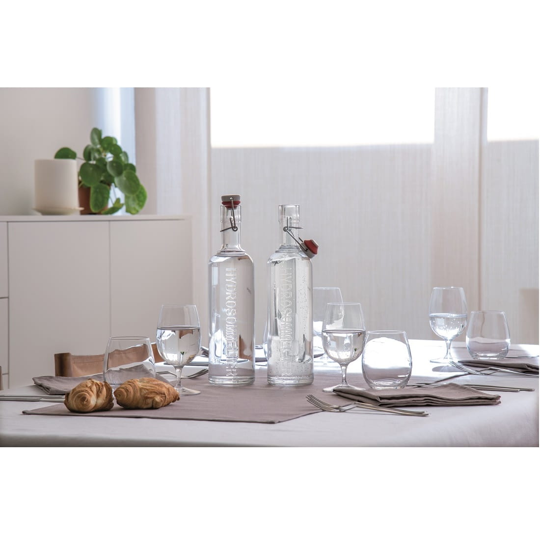 Neutralność materiału gwarantuje, że szkło nie wpływa na smak ani zapach wody, co ma kluczowe znaczenie w profesjonalnym serwisie. Smukła, elegancka forma podkreśla estetykę stołu, a szczelne zamknięcie typu swing-top zapewnia higienę, bezpieczeństwo i wygodę użytkowania. Hydrosommelier to doskonały wybór dla obiektów HoReCa, które chcą podnieść standard serwowania wody i zadbać o spójny wizerunek.