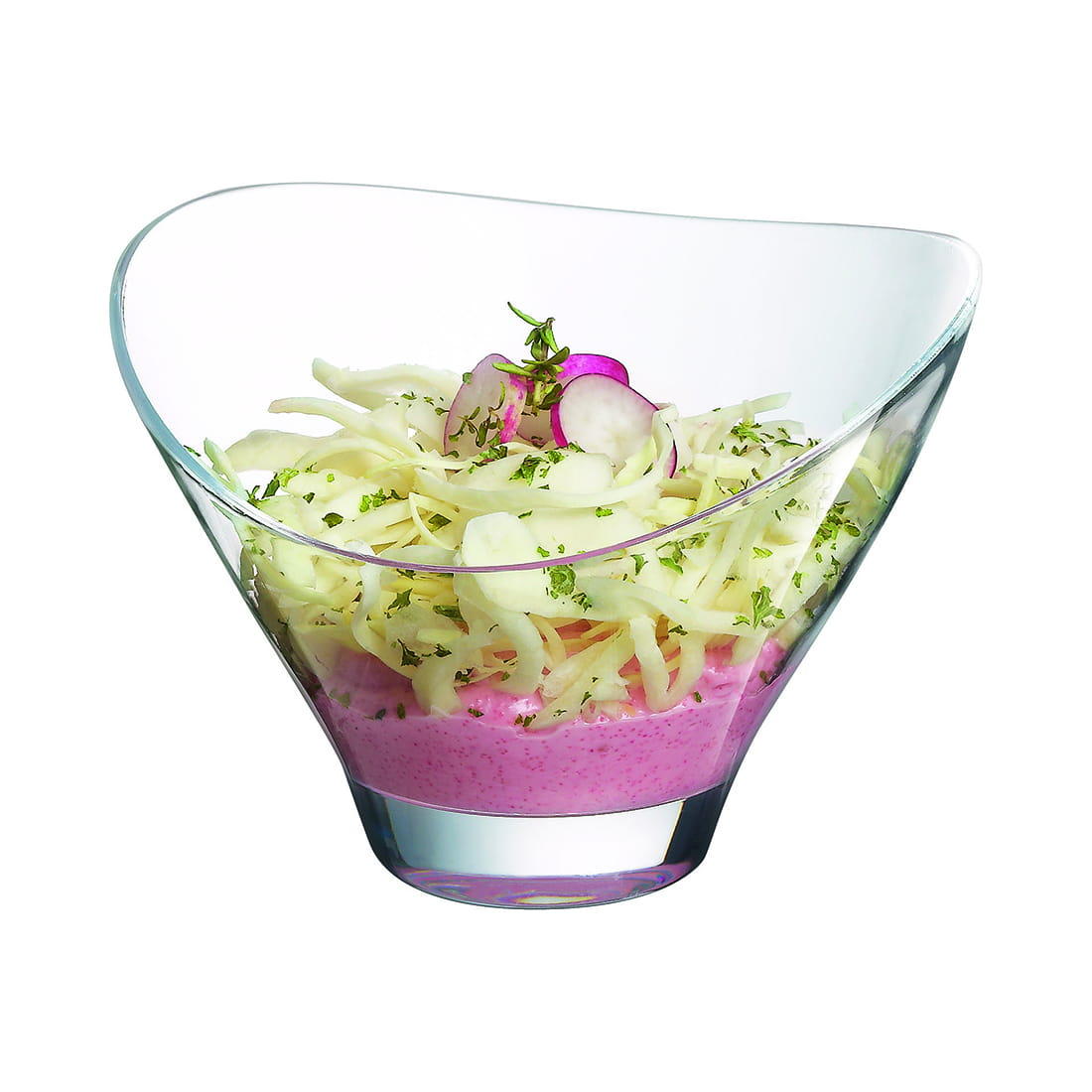 Fantazyjny pucharek deserowy rozszerza się ku górze, posiada wycięty brzeg. Ten niezwykły design dodaje uroku i atrakcyjności podczas serwowania pysznych lodów. Dzięki swojemu rozszerzającemu się kształtowi, pucharek pomaga utrzymać kremowe kulki lodów na miejscu, tworząc efektowną prezentację. Jego szklana konstrukcja dodaje elegancji i pozwala cieszyć się widokiem kolorowych warstw smaków. Ten nietypowy pucharek na lody to doskonały wybór do serwowania ulubionych deserów lodowych w kawiarniach, cukierniach lub nawet w domowym zaciszu.