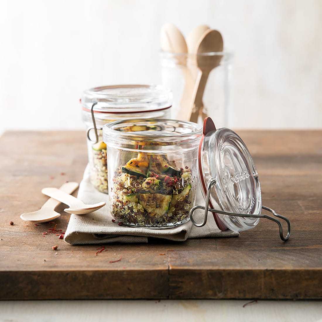 Słoik z linii LOCK EAT włoskiej marki Luigi Bormioli to bardzo praktyczna naczynie o unikalnych cechach konstrukcyjnych oraz specjalnym, opatentowanym wymiennym zatrzasku. Słoik można myć w zmywarce, zajmują mniej miejsca w kuchni oraz są bardzo łatwe w użytkowaniu dzięki możliwości całkowitego zdjęcia pokrywki. Dbając o ekologię całość została wykonana ze szkła: słoik jak i jego pokrywka, dzięki czemu elementy mogą być właściwie zutylizowane. Słoik z linii LOCK EAT posiada certyfikat gwarancji, który zapewnia o dopuszczeniu do kontaktu z żywnością, BPA-free - czyli braku związku chemicznego wykorzystywanego do produkcji wielu pojemników do żywności: Bisfenolu A. Kolekcja LOCK EAT została specjalnie zaprojektowana do konserwowania żywności za pomocą różnych technik, np. mrożenia, przechowywania w oleju, pasteryzacji.