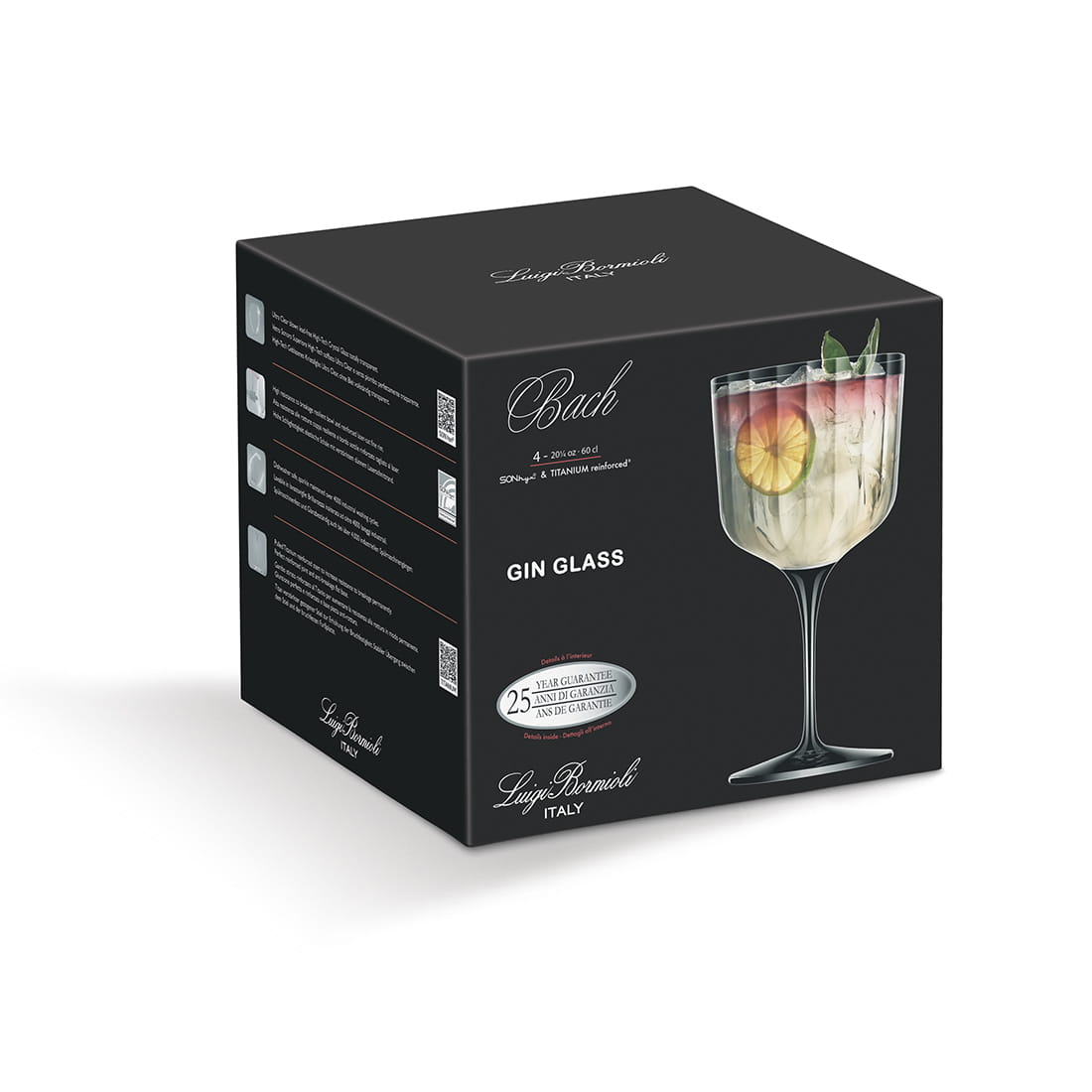 BACH to również technologia TITANIUM Reinforced, czyli kolejne udoskonalenie produkcyjne Luigi Bormioli dążące do wzmocnienia i utrwadzenia trzonu kieliszka, znacznie zwiększające odporność trzonu na otarcia, zarysowania poprzez zastosowanie tytanu. Jest to pierwsza tego typu technologia wzmacniająca trzony kieliszków, zwiększająca ich odporność na złamania o 140%.