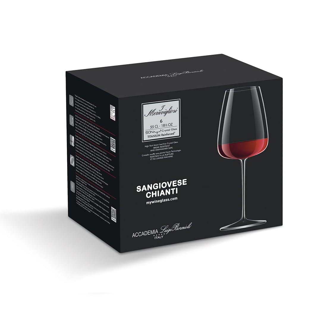 MERAVIGLIOSI to również technologia TITANIUM Reinforced, czyli kolejne udoskonalenie produkcyjne Luigi Bormioli dążące do wzmocnienia i utrwadzenia trzonu kieliszka, znacznie zwiększające odporność trzonu na otarcia, zarysowania poprzez zastosowanie tytanu. Jest to pierwsza tego typu technologia wzmacniająca trzony kieliszków, zwiększająca ich odporność na złamania o 140%.