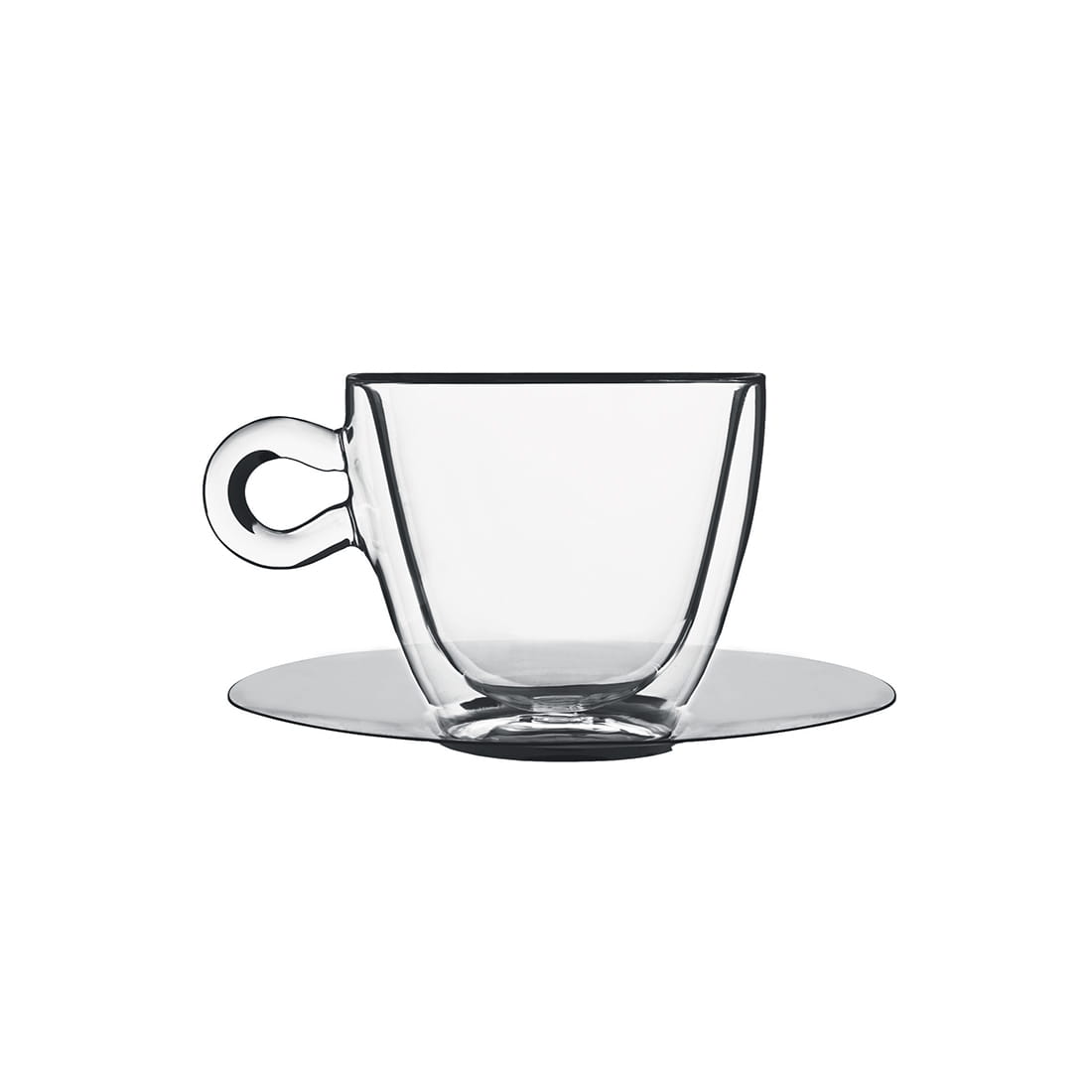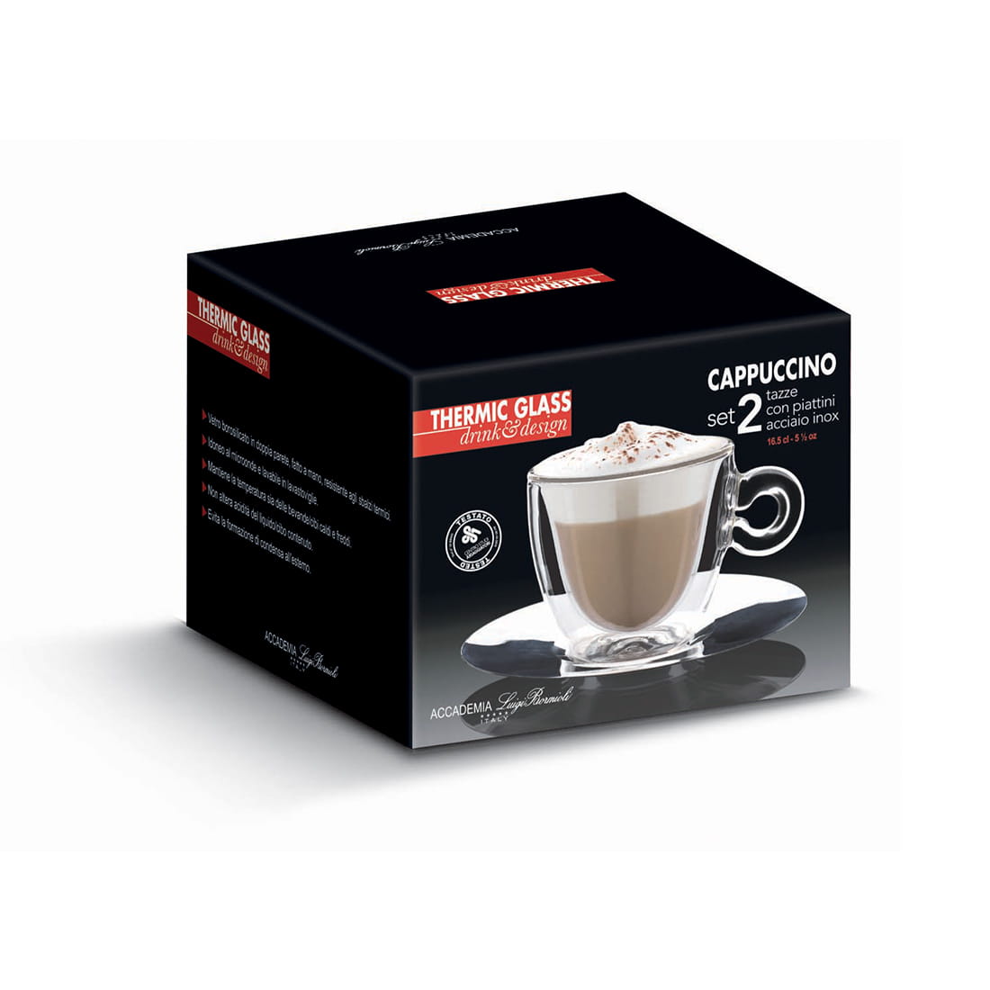 Luigi Bormioli THERMIC GLASS filiżanki do cappuccino z podwójnym dnem ze spodkami ze stali 165 ml komplet 2 szt
