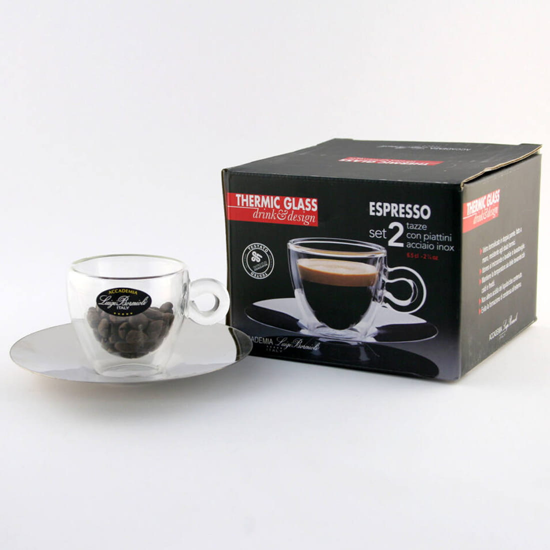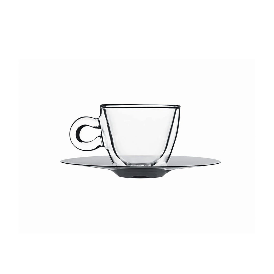 Luigi Bormioli THERMIC GLASS filiżanki do espresso z podwójnym dnem ze spodkami ze stali 65 ml komplet 2 szt