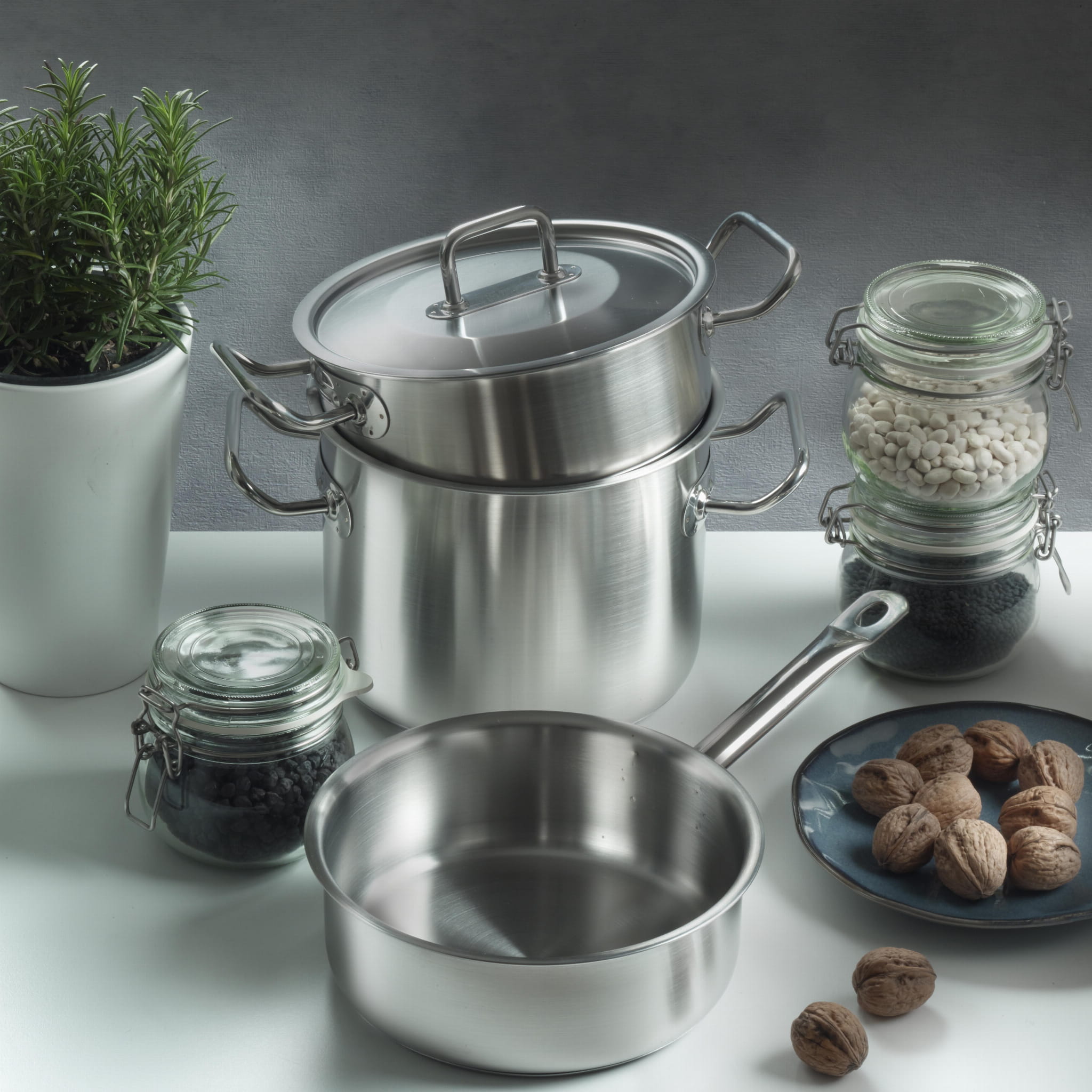 Profesjonalne, lekko wygięte uchwyty przymocowane do korpusu garnków za pomocą 10 nitów eliminują ryzyko poluzowania lub oderwania, nawet podczas intensywnego użytkowania. Precyzyjnie wyprofilowana krawędź do nalewania gwarantuje, że podczas przelewania zawartości garnka unikniesz rozlania, co zwiększa komfort pracy. Linia Master oferuje szeroki wybór wielkości i pojemności garnków, dostosowanych do potrzeb zarówno małych, jak i dużych kuchni. Eleganckie satynowe wykończenie doskonale wpisuje się w estetykę nowoczesnych kuchni. Dodatkowo garnki są przystosowane do płyt indukcyjnych, co czyni je uniwersalnym wyborem do każdego rodzaju kuchni. Garnki Master marki Pintinox to synonim profesjonalizmu, niezawodności i włoskiej precyzji. Jeśli szukasz sprzętu, który sprosta najwyższym wymaganiom i stanie się trwałym elementem Twojej kuchni, ta linia jest idealnym rozwiązaniem.