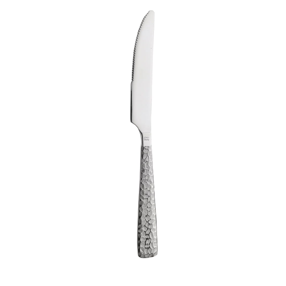 Młotkowane wykończenie rękojeści tego noża sprawia, że każdy egzemplarz jest niepowtarzalny, a gra świateł i zagłębień nadaje mu wyrafinowanego charakteru. Jego trwałość, precyzyjne wykonanie oraz młotkowana struktura sprawiają, że nóż ten jest nie tylko praktycznym narzędziem podczas spożywania posiłków, ale także pięknym elementem dekoracyjnym na stole.