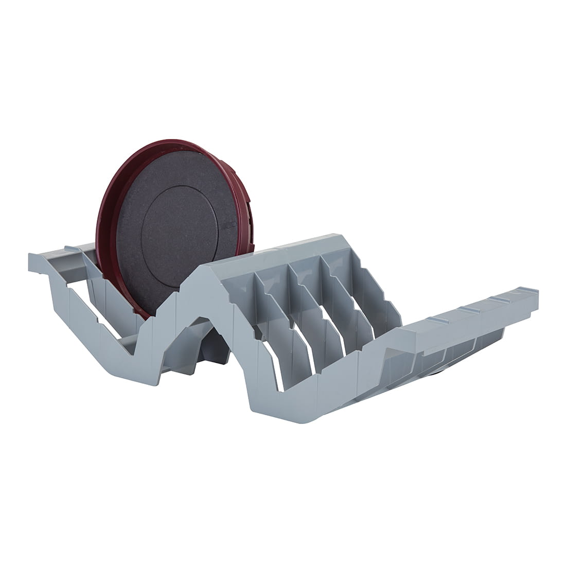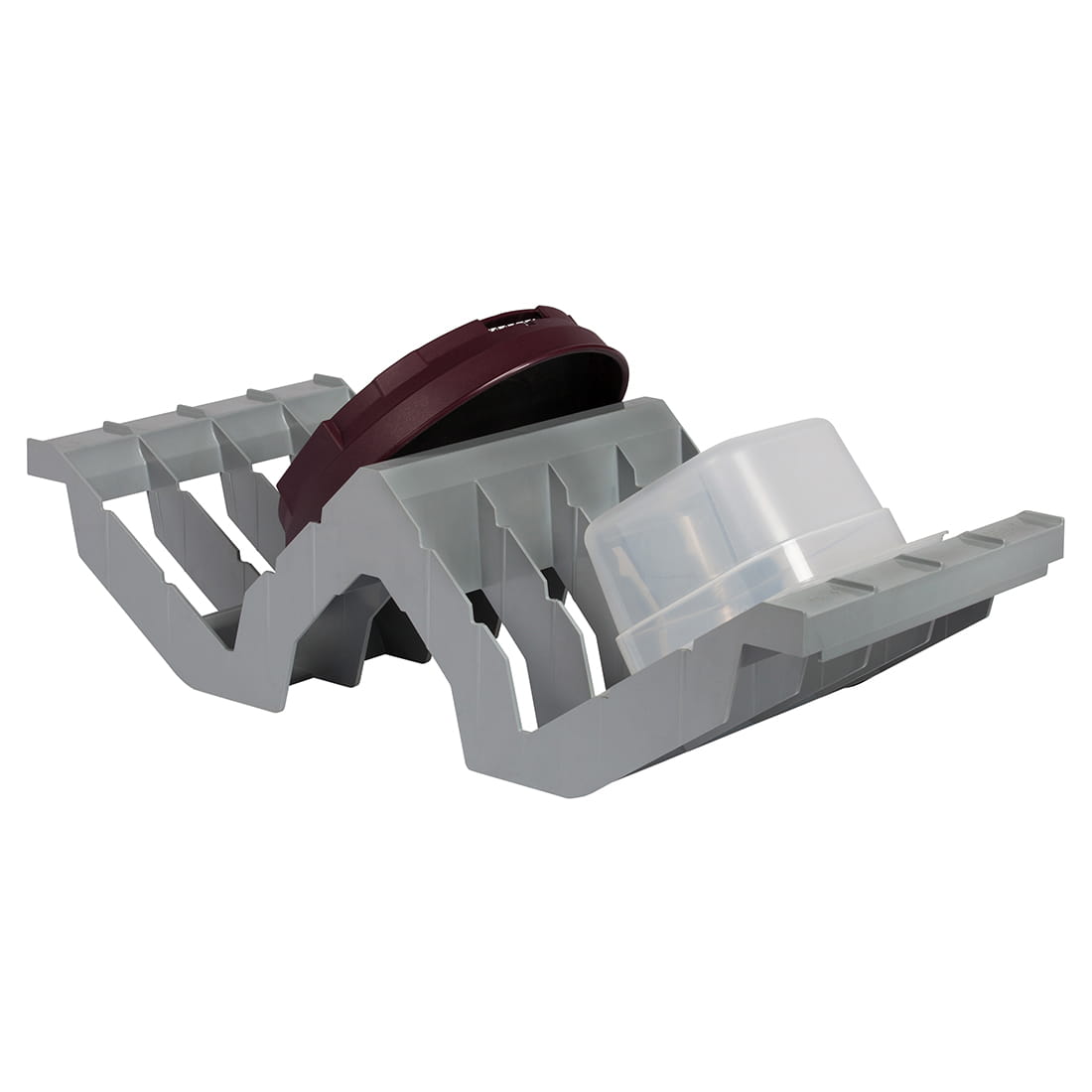 Półka przeznaczona do stosowania w regałach Cambro zapewnia higieniczne suszenie i przechowywanie, pomaga utrzymać porządek w miejscu mycia i uniemożliwia układanie bezpośrednio umytych pelletów i podstaw w stos, dzięki pionowemu ustawieniu do suszenia. Półka jednocześnie może pomieścić 8 pelletów lub podstaw. Wykonana z tworzywa odpornego na korozję, przystosowanego do mycia w zmywarkach.