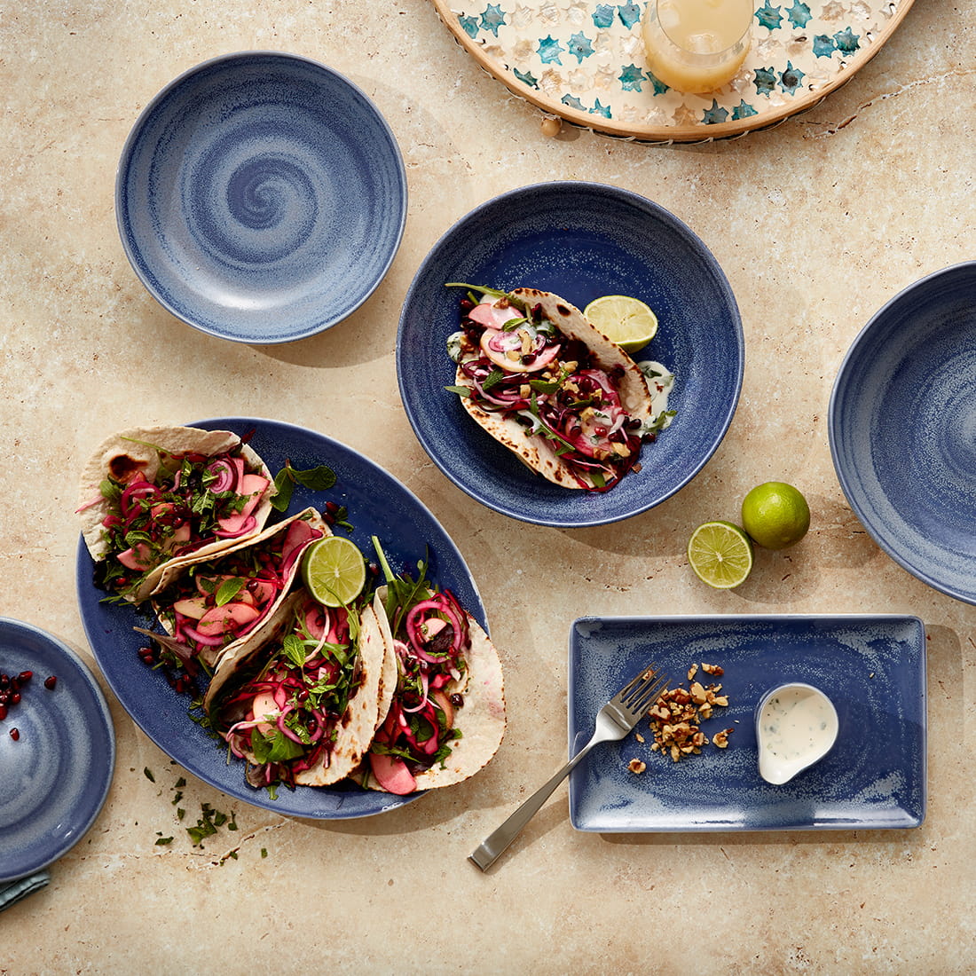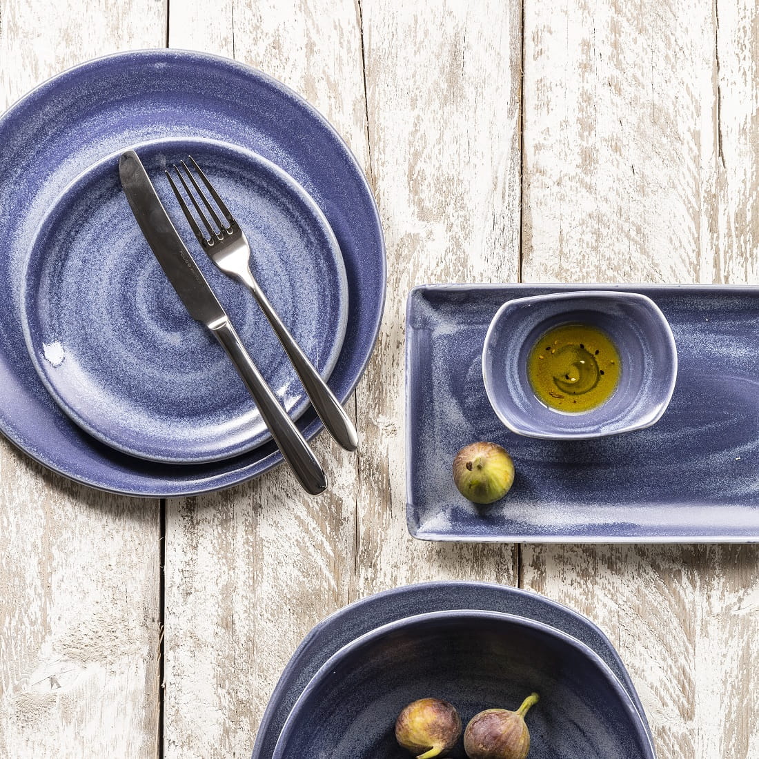 Naczynia Revolution nie tylko zachwycają estetyką, ale również są funkcjonalne. Dwukolorowa kompozycja, z niebieskim dominującym z góry, a białym od spodu, tworzy harmonijne zestawienie, które z łatwością wpisuje się w różnorodne aranżacje stołu. Seria jest także kompatybilna z linią Aurora Revolution, co daje możliwość jeszcze szerszej i kreatywniejszej prezentacji dań. Linia Revolution to nie tylko naczynia, to sztuka, która podkreśla wyjątkowość każdej potrawy.