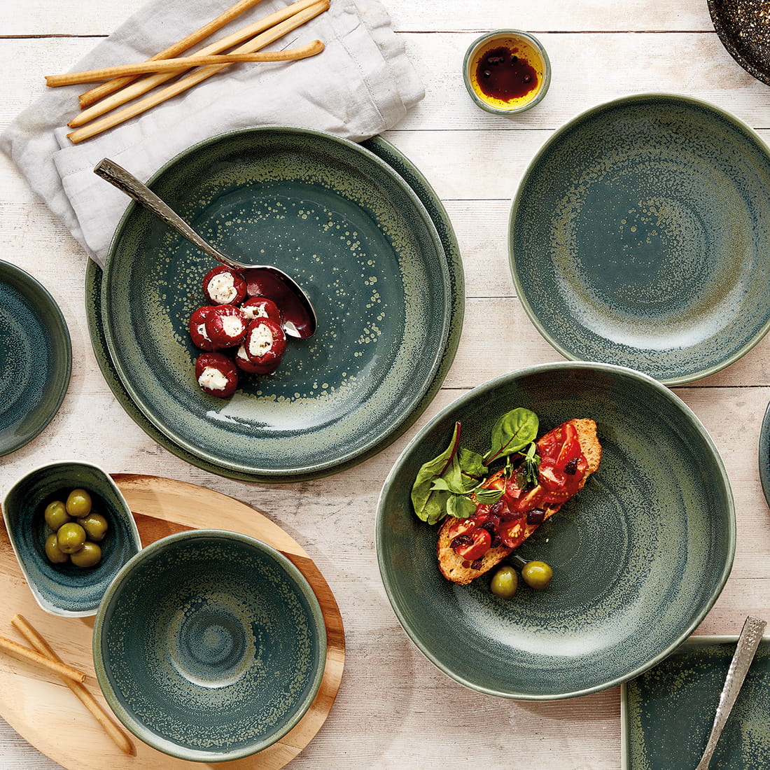 Ślad ręcznie prowadzonego pędzla staje się widoczny na każdym elemencie linii Revolution, co dodaje im artystycznego charakteru. Ta unikalna kolekcja nie tylko wzbogaca prezentację potraw, ale stanowi również piękne tło dla kulinarnych arcydzieł, niezależnie od stylu kuchni. Seria Revolution nie tylko podkreśla indywidualność każdego dania, ale także przenosi nas do świata kreatywności i rzemiosła.