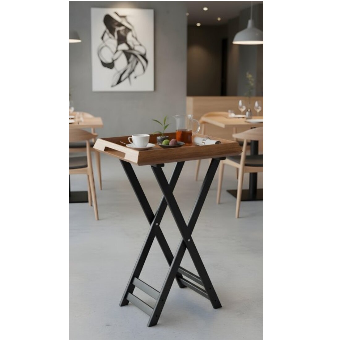 Stojak drewniany pod tacę Pujadas to niezawodne wsparcie, które umożliwia eleganckie i wygodne serwowanie potraw i napojów. Jego praktyczna konstrukcja pozwala na wygodne umieszczanie tacy na odpowiedniej wysokości, tworząc tym samym efektowną prezentację dla Twoich gości czy klientów.