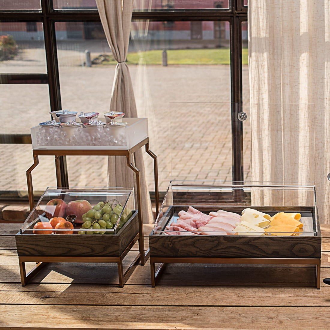Do kompletu dostępne są drewniane skrzynki GN 1/1 o różnych wysokościach, które doskonale uzupełnią ekspozycję bufetową.