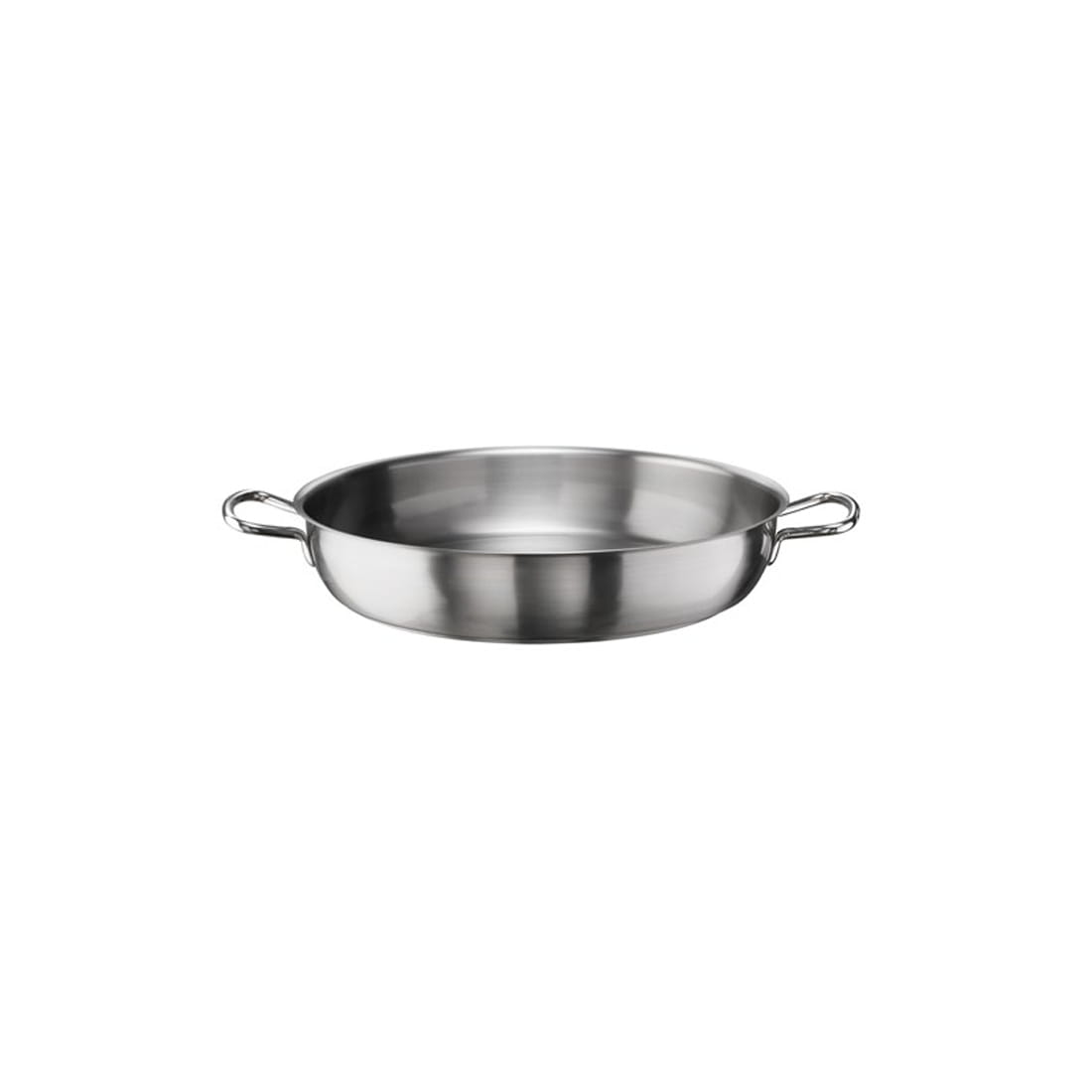 Profesjonalna patelnia z grubym dnem przeznaczona do smażenia i duszenia, zapiekania w piekarniku, jak i dłuższego przechowywania w każdej temperaturze.