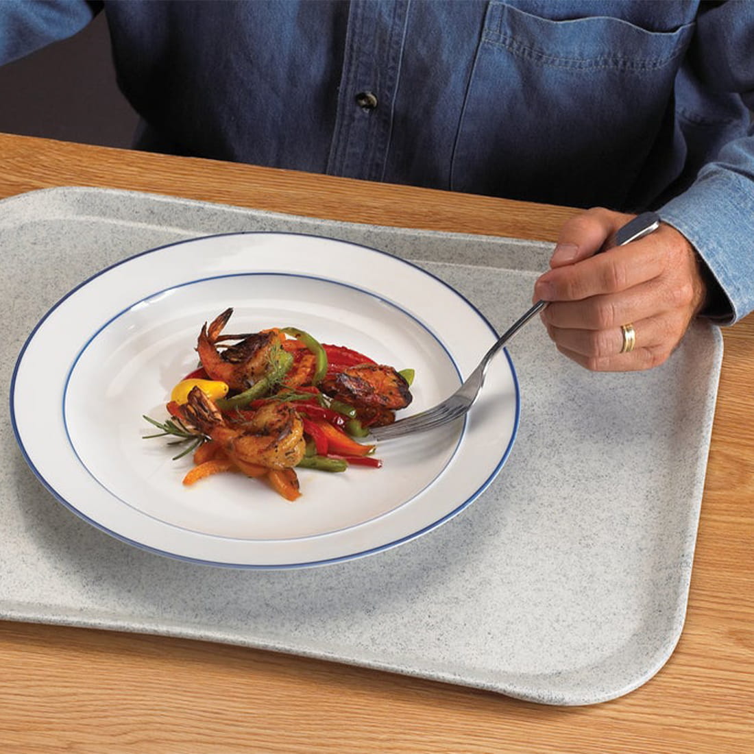 Taca VERSA LITE CENTURY VL3253 o rozmiarze 33 x 43 cm, w kolorze szarym nakrapianym to ekonomiczna taca, która sprawdzi się w kantynach, stołówkach, szpitalach, szkołach a także w hotelach. Wykonana z SMC czyli poliestru wzmocnionego włóknem szklanym. Powierzchnia tacy jest gładka a nowatorskie, niskie krawędzie i narożniki powiększają użytkową powierzchnię tacy przez co są co wygodniejsze dla użytkowników. Taca cechuje się doskonałą odpornością na stłuczenia, zadrapania, zaplamienia oraz odpornością na chemikalia. Tacę można myć w zmywarkach do trzech razy dziennie. Odporność na temperaturę od -40⁰C do +130⁰C. Nie zaleca się stosowania w wózkach podgrzewanych.